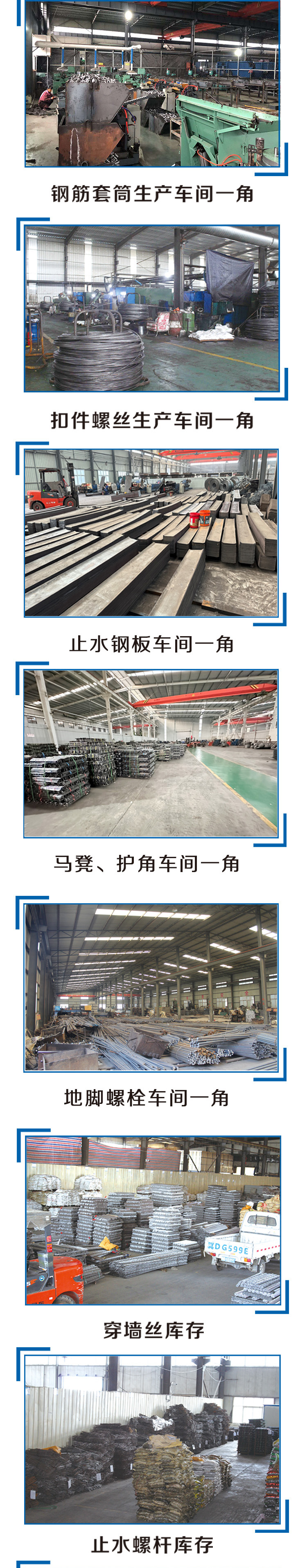 专业生产:通丝螺杆、三段止水螺杆、止水螺杆、地脚螺栓、方柱扣、梁夹具、悬挑梁、步步紧、山型卡、六角母、山型母、钢筋马镫、角铁/楼梯护角、顶托、底托、扣件螺丝、大棒、十字扣件、连接扣件、转向扣件、小盖、内盖、外盖、顶托螺母、铁钉、扎丝