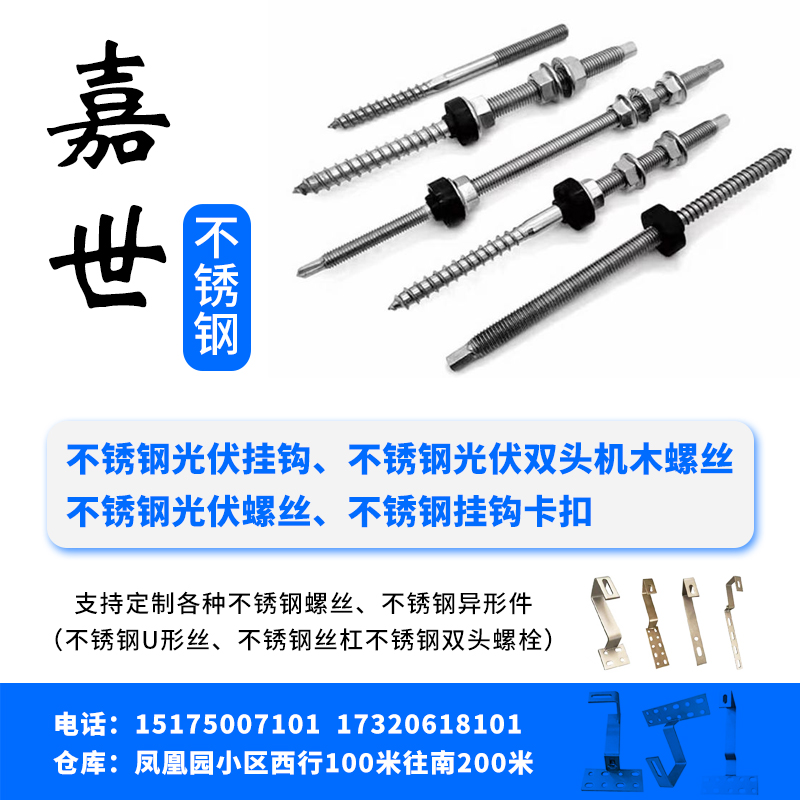 主营:不锈钢光伏挂钩、不锈钢光伏双头机木螺丝、不锈钢光伏螺丝、不锈钢挂钩卡扣