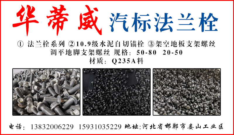 4.8法兰栓、8.8法兰螺钉、10.9法兰螺丝、12.9级高强度法兰栓、细扣法兰螺栓、美制扣法兰栓、英制扣法兰栓、8.8级法兰栓、10.9级法兰螺丝、加长法兰面外六角螺栓、镀彩法兰栓、镀锌法兰栓、高强度法兰螺丝、六角法兰面螺栓、自切锚栓、水泥锚栓、排气管螺丝、气标螺丝