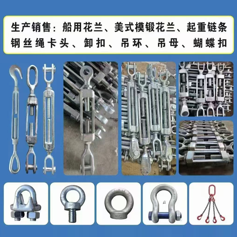 主营:船用花兰,美式模锻花兰,钢丝绳卡头,卸扣,吊环,吊母,鸡心环,吊钩,保险钩,蝴蝶扣,滑轮卸扣等