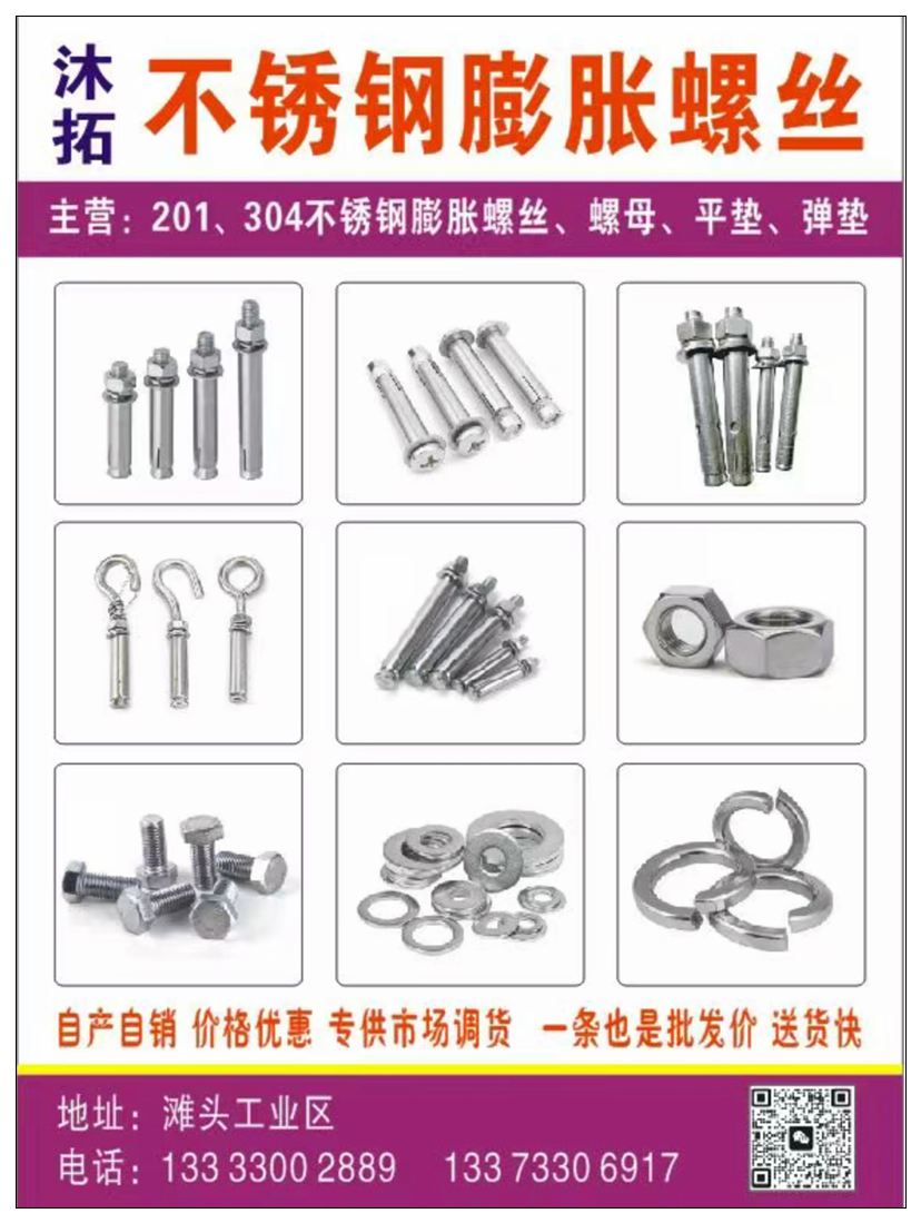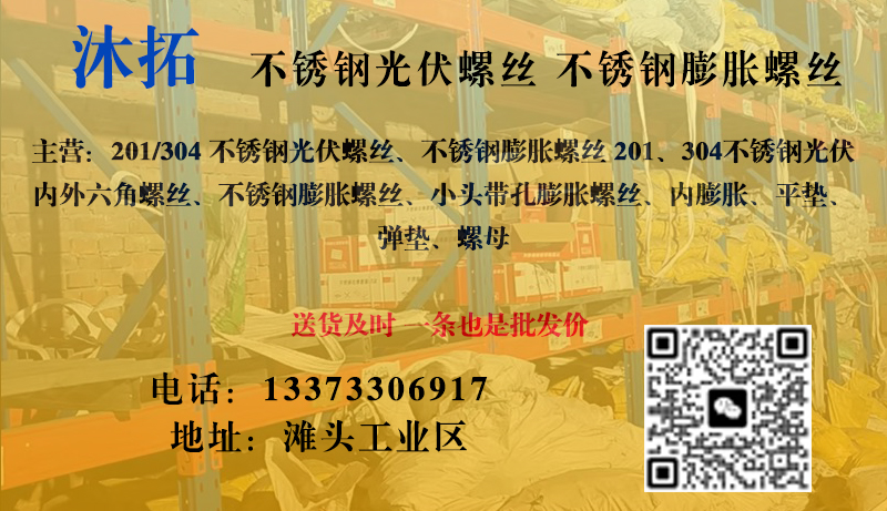 主营:201/304 不锈钢光伏螺丝、不锈钢膨胀螺丝