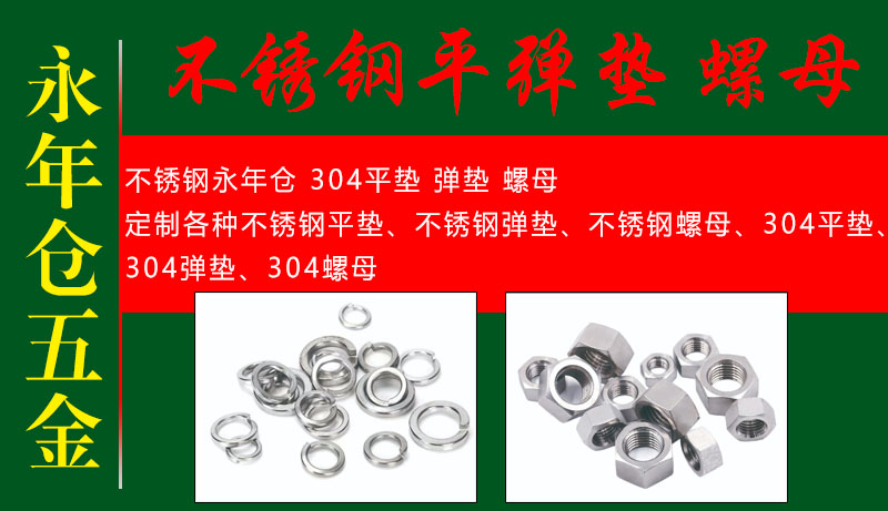 定制各种不锈钢平垫、不锈钢弹垫、不锈钢螺母、304平垫、304弹垫、304螺母