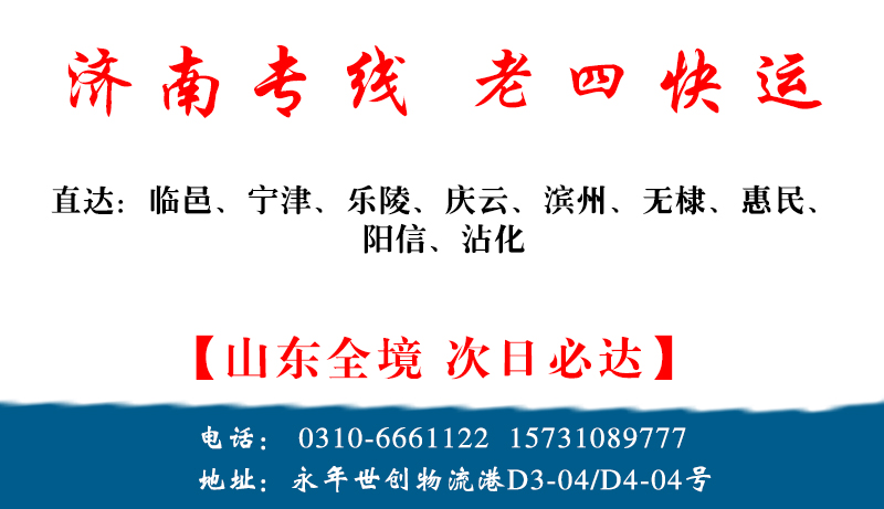电话:0310-6661122 0310-6792588 15533089777 15731089777 地址:永年世创物流港D3-04/D4-04号