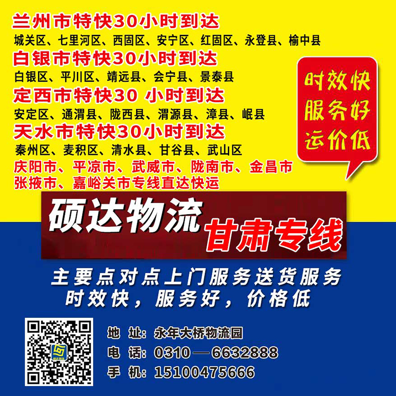 兰州市特快30小时到达(城关区、七里河区、西固区、安宁区、红固区、永登县、榆中县)
