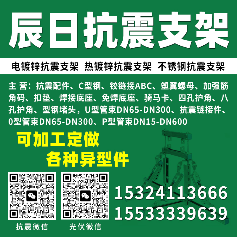 主营:抗震配件,C型钢,铰链接ABC,塑翼螺母,加强筋,角码,扣垫,焊接底座、免焊底座,骑马卡,四孔护角,八孔护角,型钢堵头,U型管束DN65-DN300,0型管束DN65-DN300,P型管束DN15-DN600,抗震链接件、 可加工定做各种异型件