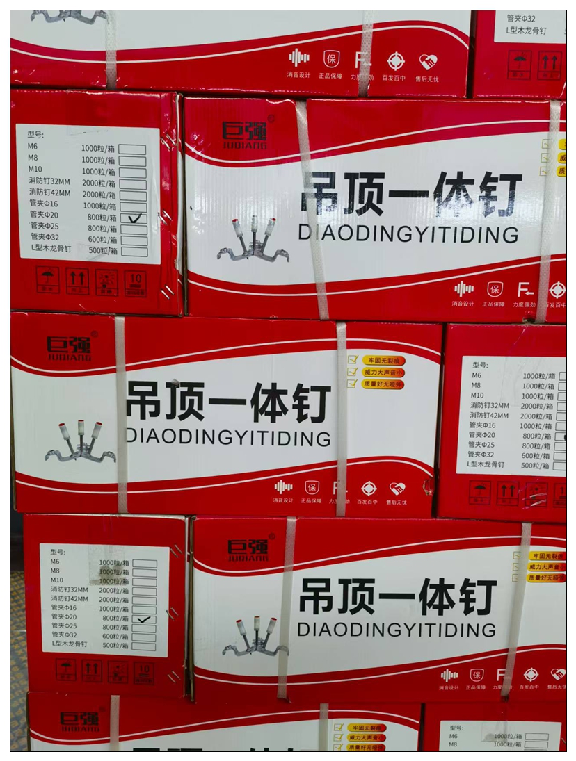 巨强一体钉 主营产品:吊顶一体钉、管卡钉、迷你钉、消防钉、吊顶神器 专供市场调货 一体钉可以加工定制数量、包装 贴牌 电话:13703103875 17532336359 地址:河北省邯郸市永年区老商城农行斜对面