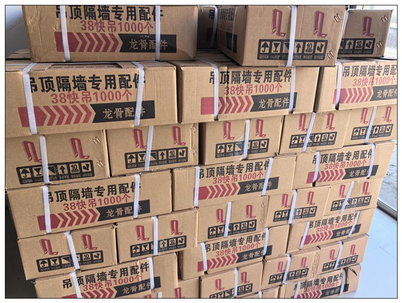 主营:8、50、60吊件、38、50、60吊挂、38、50彩快吊 38、50烤漆勾、38、50直吊、88、98吊片、38、50、 60、主付接、75、100、150支卡、勾塔挂件 C型钢挂勾、天花板护角、龙骨卡、瓷砖调平、瓷砖找平、3米丝杆、38快吊、彩快吊、螺母、炮钉、一体钉、鱼鳞拉爆 等吊顶配件