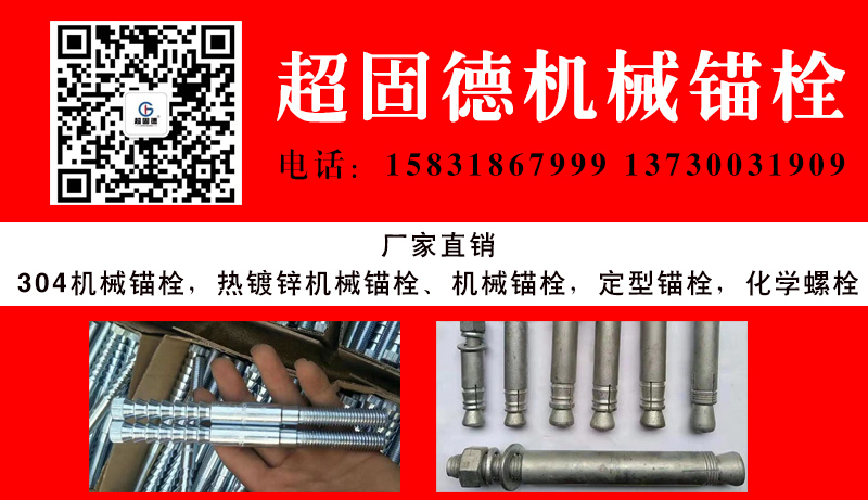 超固德机械锚栓 厂家直销304机械锚栓,热镀锌机械锚栓、机械锚栓,高强度机械锚栓,定型锚栓 热镀锌机械锚栓,重型机械锚栓,单管机械锚栓,定型化学锚栓 ,特殊化学锚栓 ,化学螺栓,8.8级化学锚栓,高强度化学锚栓 8.8锚栓 高强度锚栓 电话:15831867999 13730031909