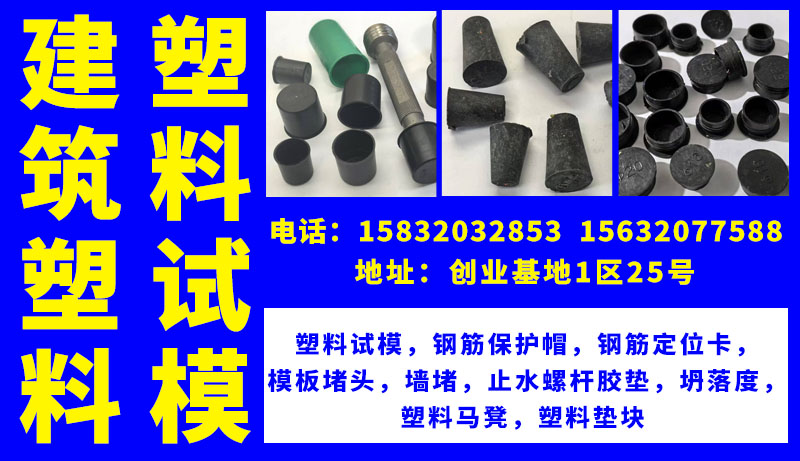 主营:塑料试模,钢筋保护帽,钢筋定位卡,模板堵头,墙堵,止水螺杆胶垫,坍落度,塑料马凳,塑料垫块