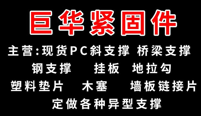 主营:现货PC斜支撑、桥梁支撑、钢支撑、挂板、地拉勾、塑料垫片、木塞、墙板链接片