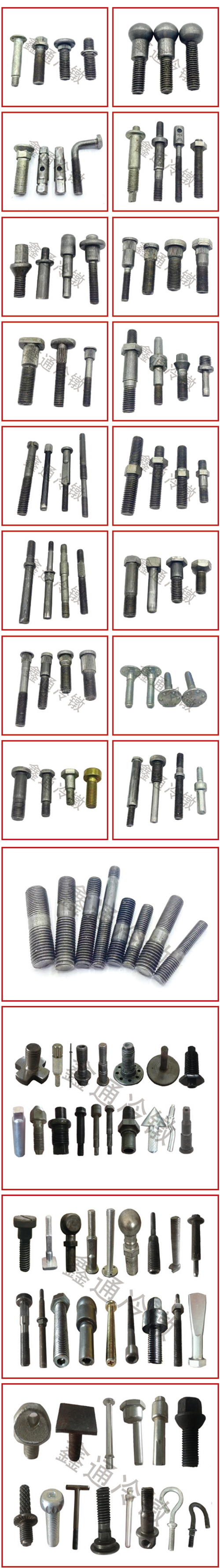 本厂专业订做生产:冷镦异形件、中部成型件、各种头部变型件、台阶螺栓、汽车螺栓、气标螺栓 轮胎螺栓及各种冷镦异形件 冷镦非标件 冷墩异形件