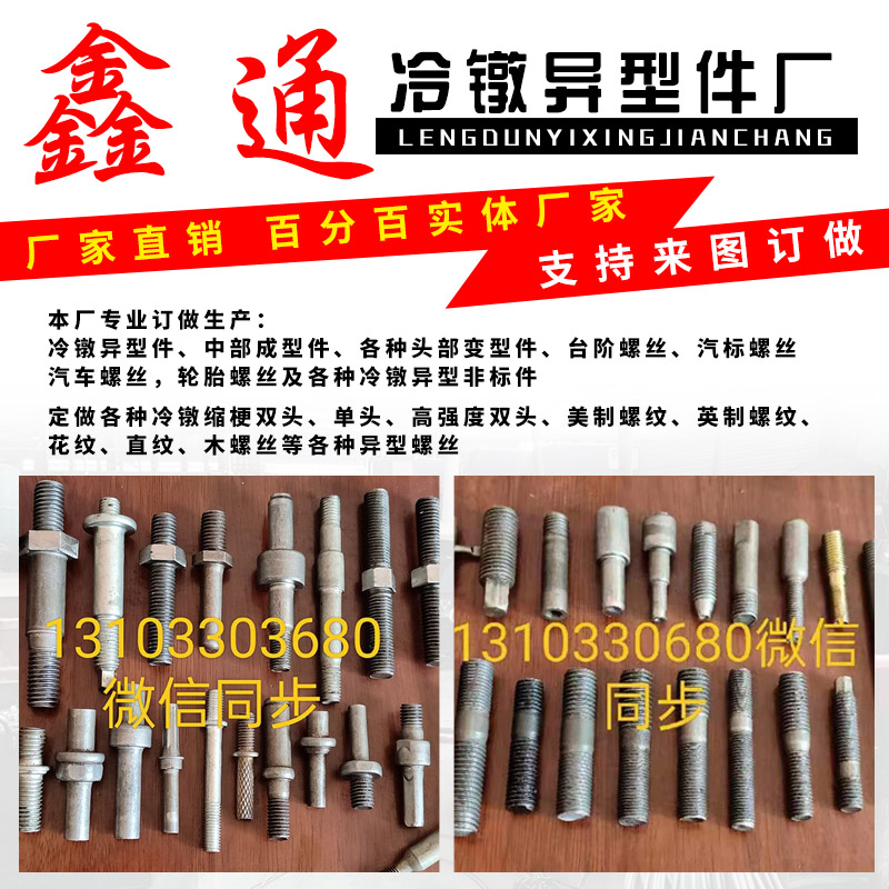 定做各种冷镦缩梗双头、冷镦缩梗单头、缩梗高强度双头、美制螺纹、英制螺纹、花纹、直纹、木螺丝等各种异形螺丝