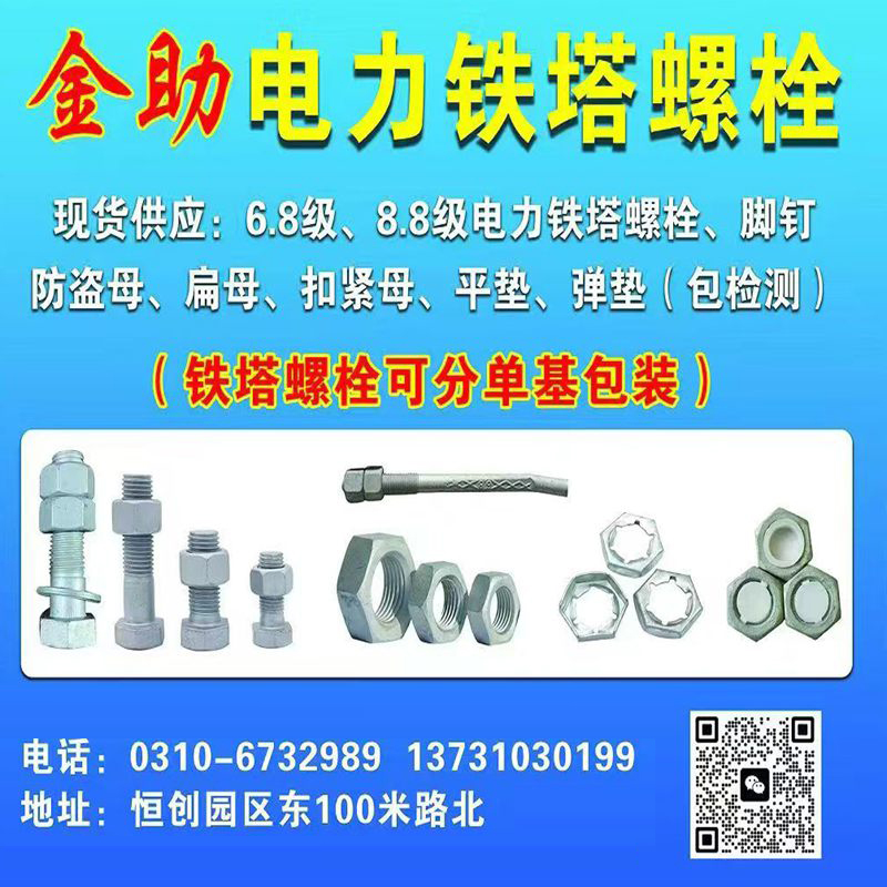 6.8级电力铁塔螺栓、8.8级电力铁塔螺栓、6.8级铁塔栓、8.8级铁塔栓、6.8级电力铁塔螺丝、8.8级电力铁塔螺丝,防盗螺母、热镀锌扁母、热镀锌扣紧母、热镀锌平垫,热镀锌弹垫,
