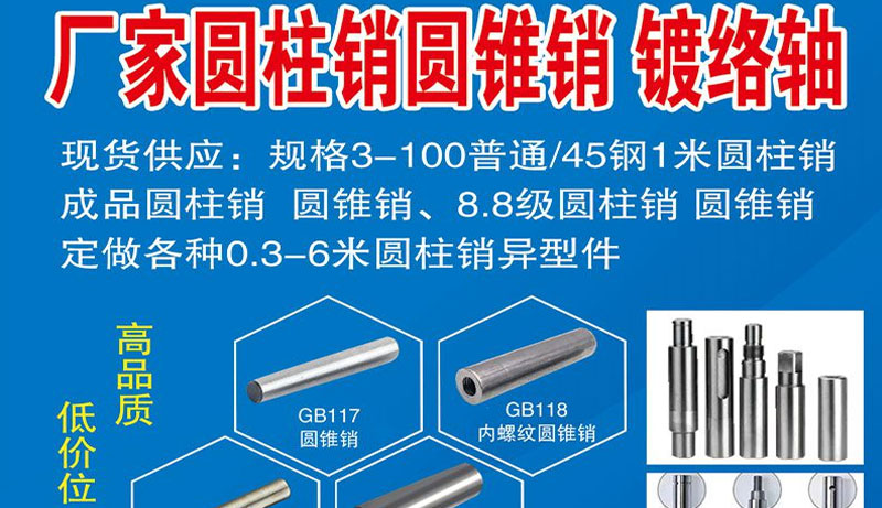现货供应1米 3-100 普通/45钢圆柱销 现货成品圆柱销 圆锥销