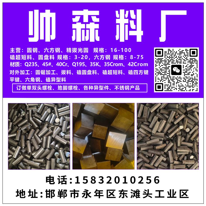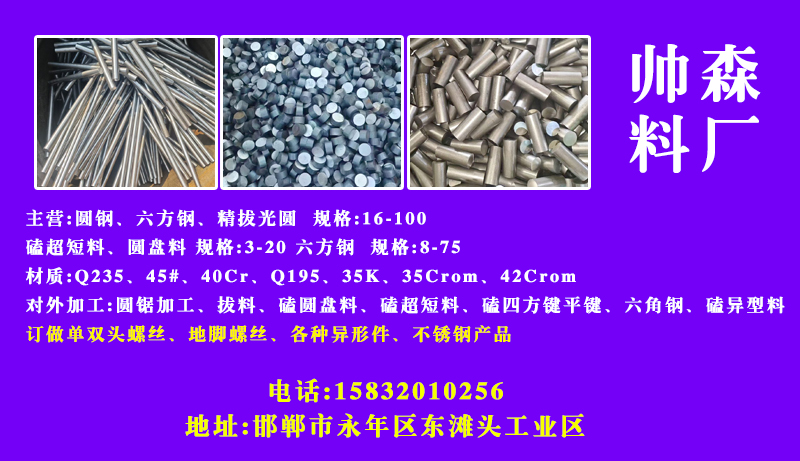 对外加工:圆锯加工、拔料、磕圆盘料、磕超短料、磕四方键平键、六角钢、磕异型料