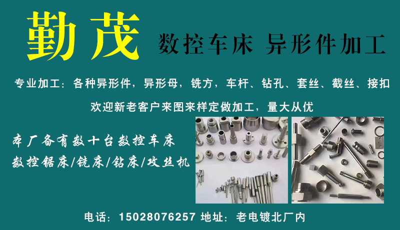 勤茂数控车床 异形件加工 本厂备有数十台数控车床、数控锯床、铣床、钻床、攻丝机 专业加工:各种异型件,异型母,铣方,车杆、钻孔、套丝、截丝、接扣 欢迎新老客户来图来样定做加工,量大从优 电话:15028076257 地址:老电镀北厂内
