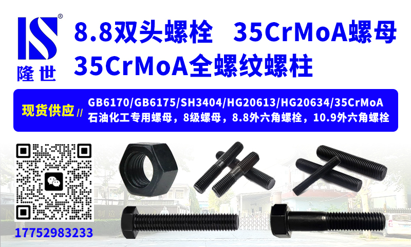 35CrMo全螺纹螺柱、双头螺栓、45钢 8.8级全螺纹螺柱、双头螺栓、化工专用螺柱螺母,35CrMo加厚螺母、35CrMo化工重型螺母、25Cr2MoVA重型螺母。可定做25Cr2MoVA双头全螺纹、缩梗双头、带肩双头、H15拧入式双头、H16高压双头、HG/T21573双头、A193-B7全螺纹螺柱、双头螺丝,A194-2H、A194-7、H17螺母