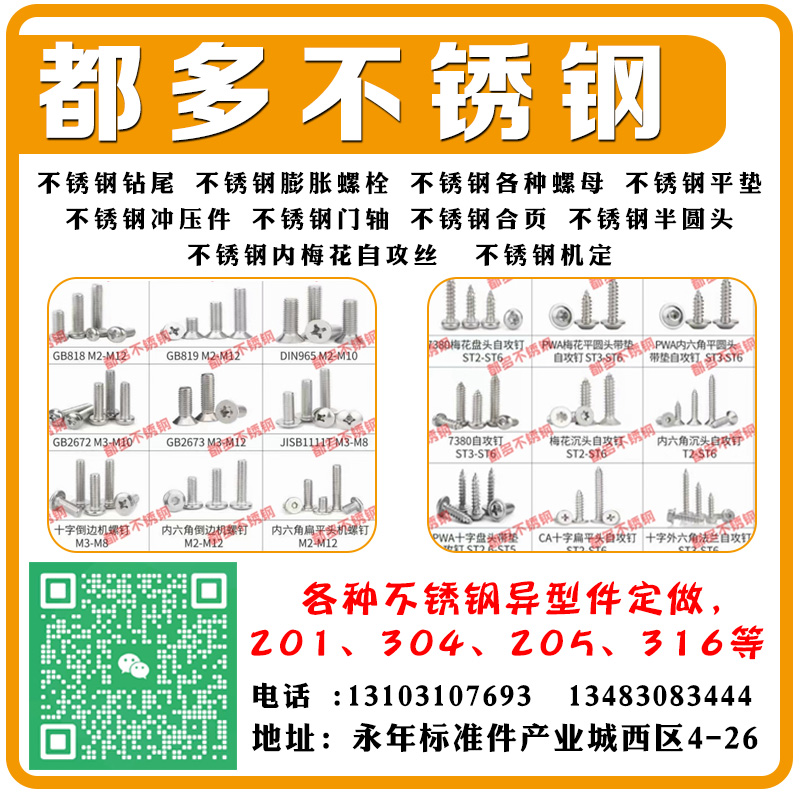 不锈钢u型螺栓、不锈钢鱼鳞膨胀、不锈钢光伏螺丝,不锈钢钻尾丝,不锈钢钻尾螺丝、不锈钢钻尾螺钉、不锈钢螺钉、不锈钢膨胀螺丝,不锈钢膨胀螺栓、各种不锈钢螺母,不锈钢螺帽、不锈钢平垫,不锈钢垫圈、不锈钢冲压件,不锈钢门轴,不锈钢合页,不锈钢半圆头螺钉,不锈钢内梅花自攻丝,不锈钢自攻丝、不锈钢机定螺丝、不锈钢机定螺钉、不锈钢外六角螺丝、不锈钢内六角螺丝