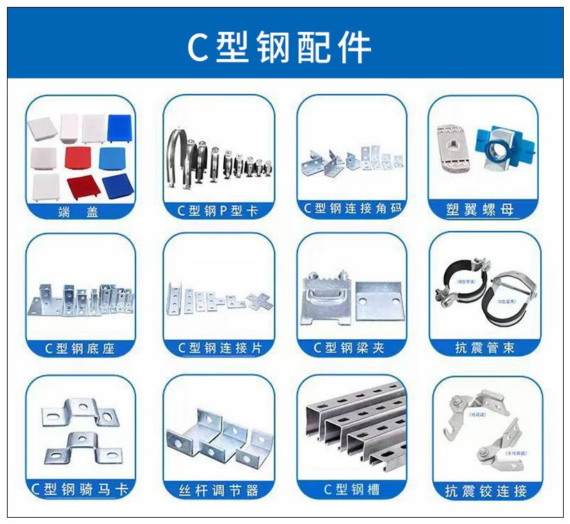 管廊托臂 哈芬槽 T型螺栓 铰链接 型钢底座 O型管束 P型管束 U型管束 型钢连接件 C型钢 抗震支架 成品支吊架 管廊支架 A型铰链接 B型铰链接 C型铰链接 C钢扣垫 加强筋螺栓 抗震连接件 抗震角码 抗震管束 抗震管卡 T型螺栓