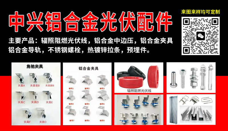 主要产品:辐照阻燃光伏线,铝合金中边压,铝合金夹具,铝合金导轨,不锈钢螺栓,热镀锌拉条,预埋件。