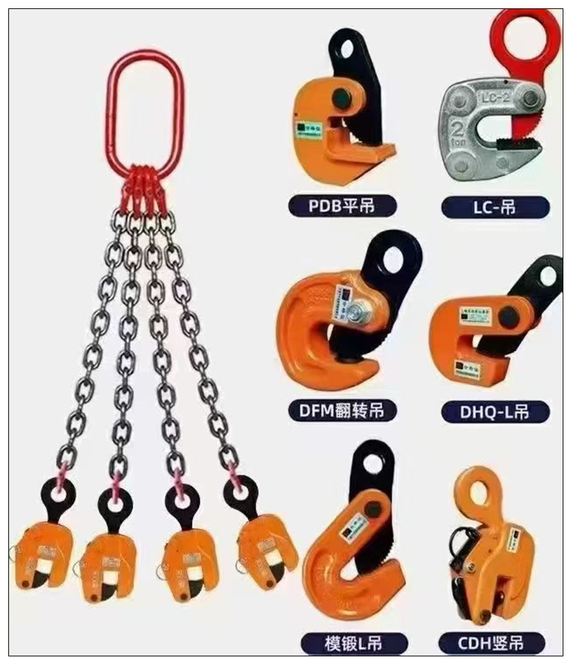 PDB平吊、Lc-吊、DFM翻转吊、DHQ-L吊、模锻L吊、CDH竖吊、羊角钩、环眼钩、宽嘴磅钩、旋转钩、大开口吊钩、羊角钢管钩、环眼钢管钩、旋转钩(带轴承)、货柜钩、蝴蝶扣、强力环、子母环、美式花兰螺栓、弓形卸扣