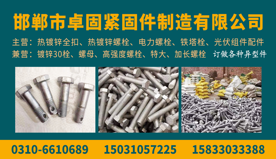 主营:热镀锌全扣、热镀锌螺栓、电力螺栓、铁塔栓、光伏组件配件
