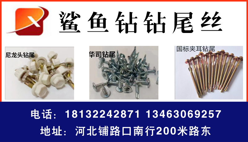 六角头钻尾螺丝、尼龙头钻尾螺丝、六角复合垫钻尾丝、华司头钻尾螺丝、沉头钻尾螺丝、蓝白锌复合垫钻尾丝、国标夹耳钻尾丝、干壁钉、纤维板钉