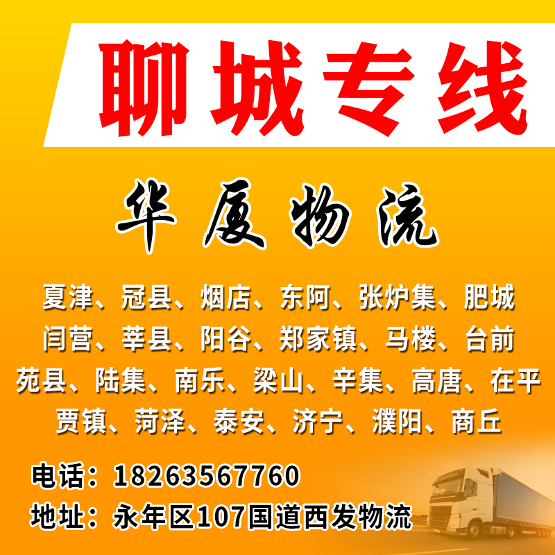 聊城专线:夏津、冠县、烟店、东阿、张炉集肥城、闫营、莘县、阳谷、郑家镇、马楼、台前、苑县、陆集、南乐、梁山、辛集、高唐、在平、贾镇、菏泽、泰安、济宁、濮阳、商丘 电话:18263567760 17631968035