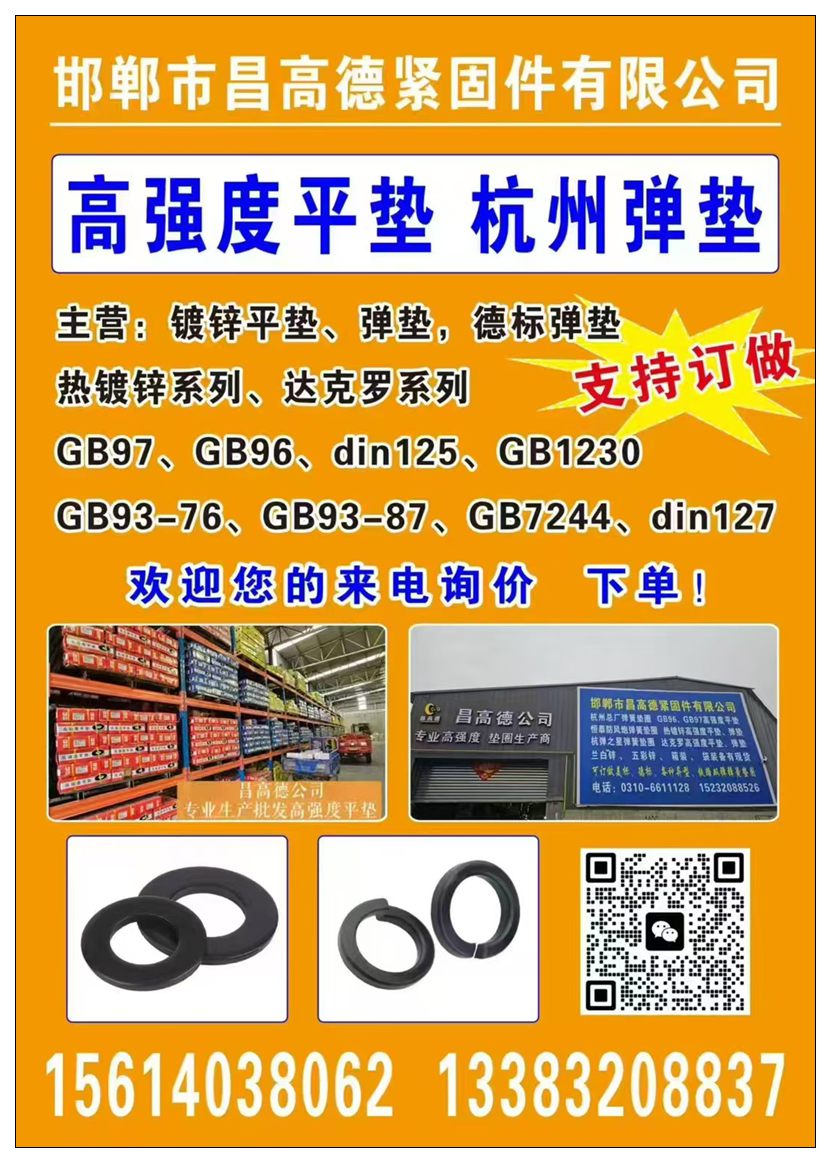 主营:高强度平垫,杭州弹垫,镀锌平垫,镀锌弹垫,热镀锌系列,达克罗系列,德标弹垫,支持定做!