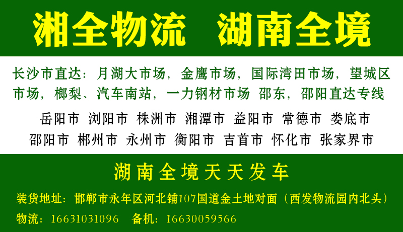 长沙市直达:月湖大市场,金鹰市场,国际湾田市场,望城区市场,榔梨,汽车南站,一力钢材市场 邵东,邵阳直达专线