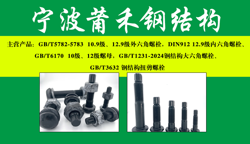 主营产品:GB/T5782-5783 10.9级、12.9级外六角螺栓,DIN912 12.9级内六角螺栓、GB/T6170 10级、12级螺母,GB/T1231-2024钢结构大六角螺栓、GB/T3632 钢结构扭剪螺栓