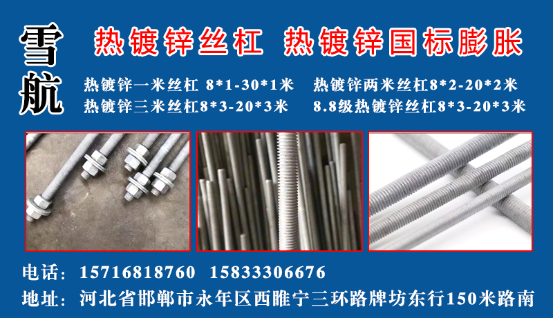 雪航热镀锌丝杠 热镀锌国标膨胀