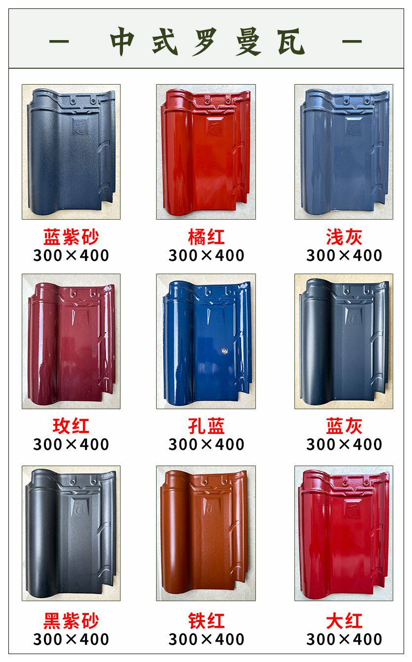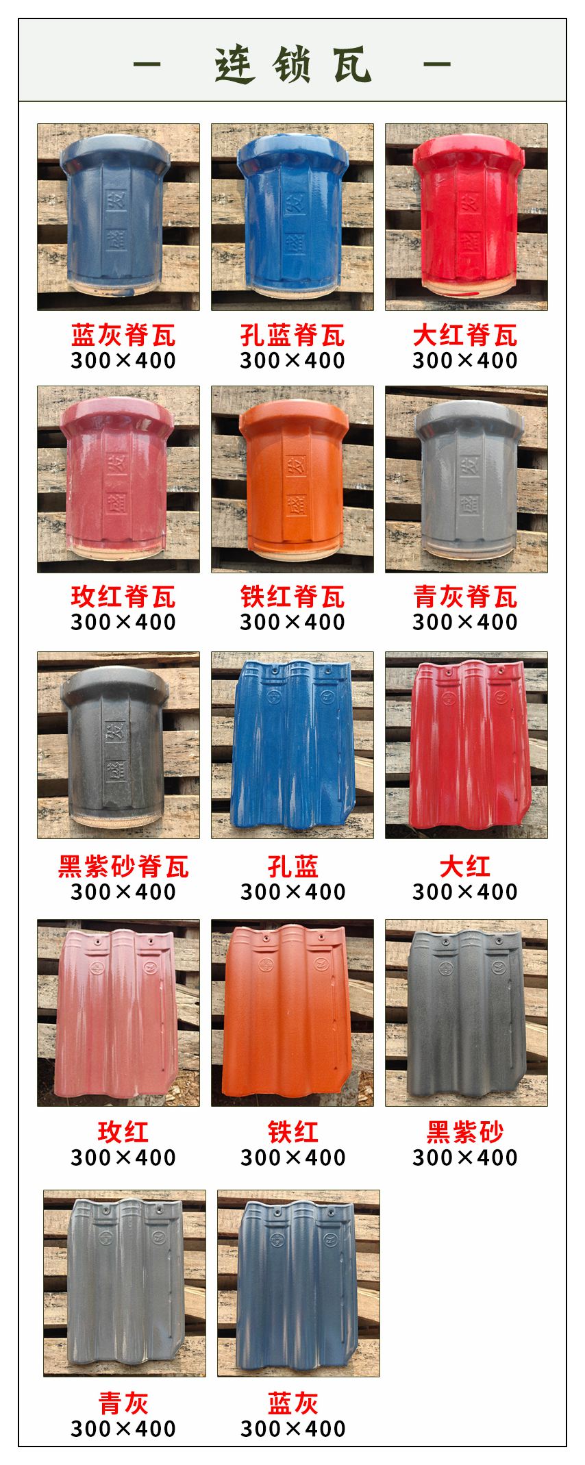琉璃瓦、连锁瓦、s瓦、平板瓦、罗曼瓦、单波瓦