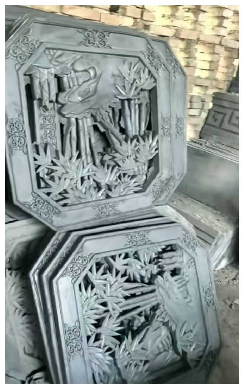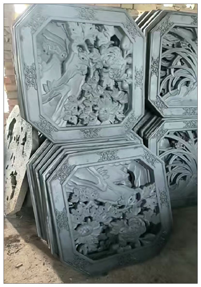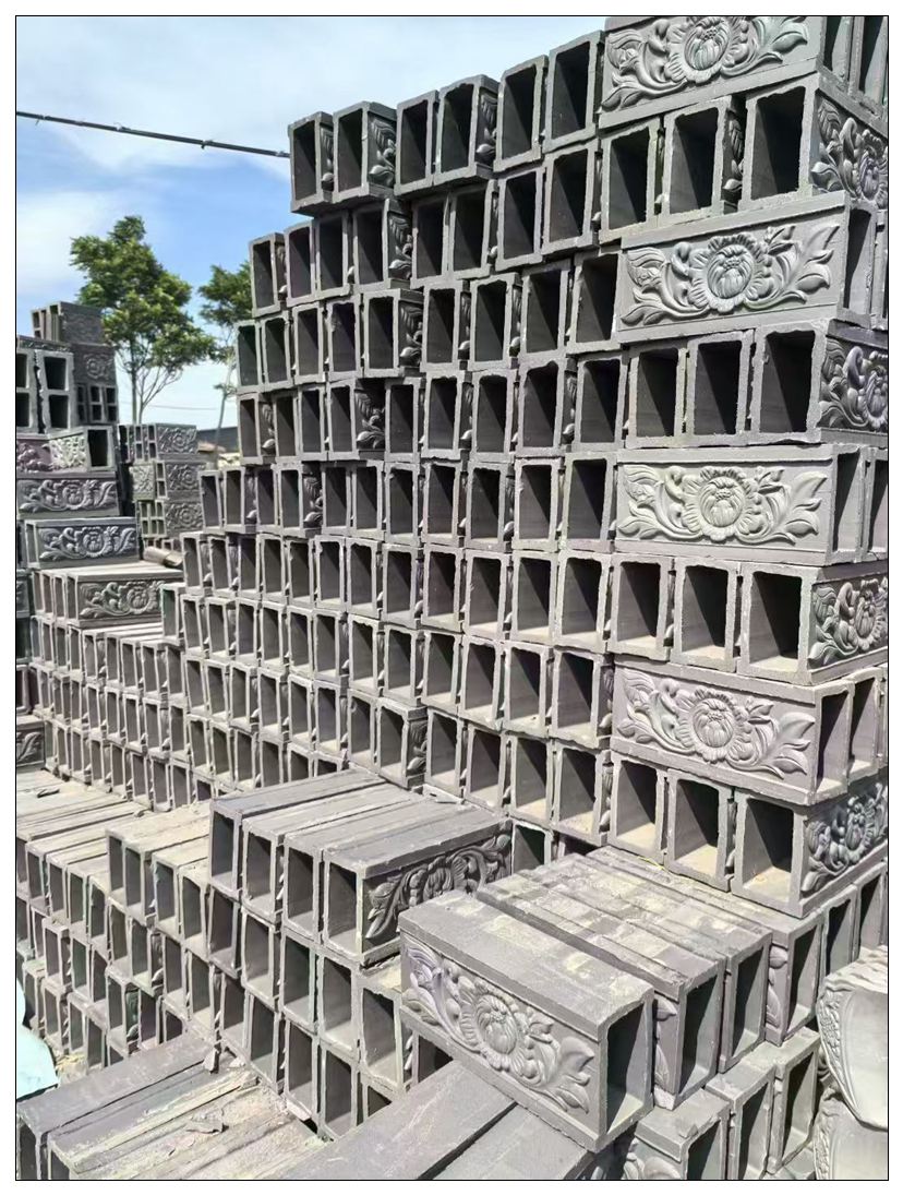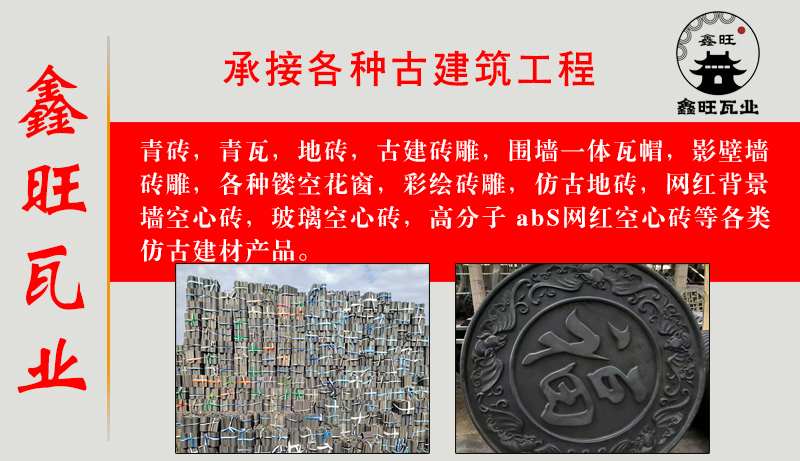 我厂主要生产:青砖,青瓦,地砖,古建砖雕,围墙一体瓦帽,影壁墙砖雕,各种镂空花窗,彩绘砖雕,仿古地砖,网红背景墙空心砖,玻璃空心砖,高分子 abS网红空心砖等各类仿古建材产品。