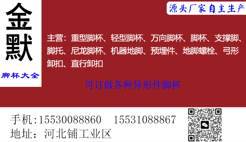 重型脚杯 轻型脚杯 万向脚杯 脚杯 支撑脚 脚托 尼龙脚杯 机器地脚 预埋件 地脚螺栓 弓形卸扣 直行卸扣 可订做各种异形件脚杯