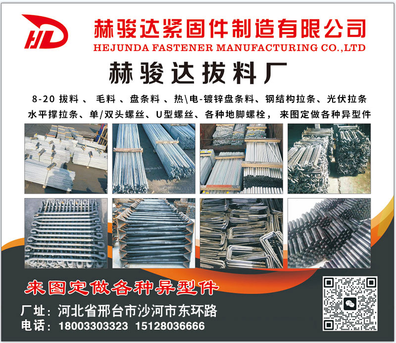 专业生产:8-20 拔料 毛料 盘条料 热\电-镀锌盘条料 钢结构拉条 光伏拉条 水平撑拉条 单/双头螺丝 U型螺丝 各种地脚螺栓