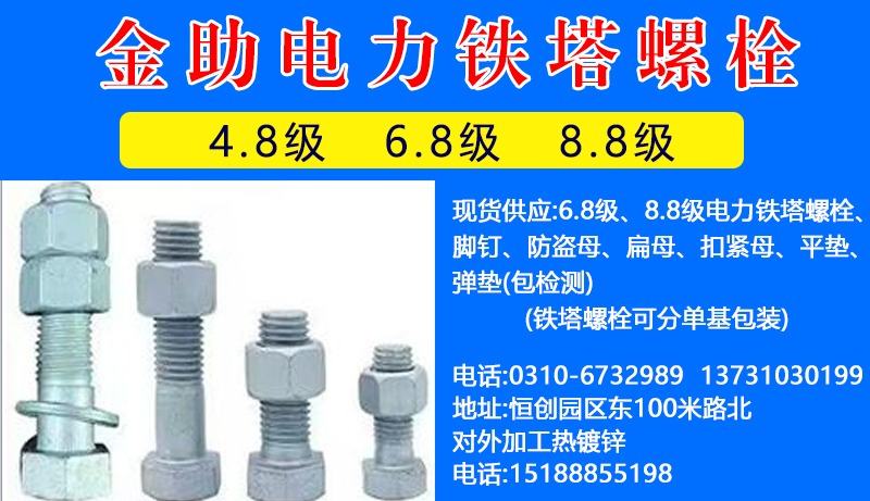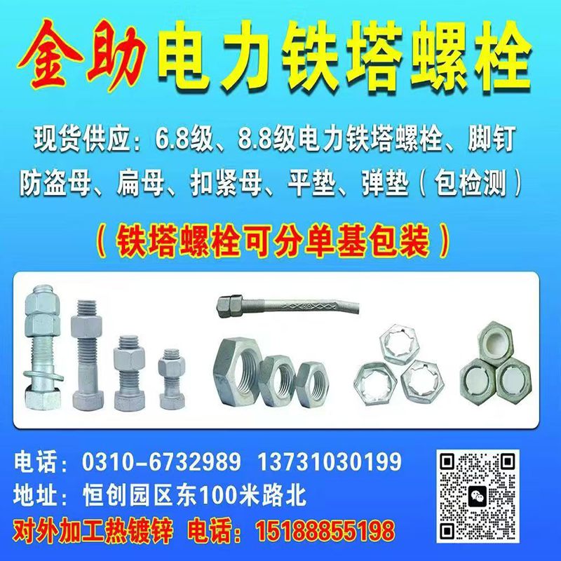 6.8级电力铁塔螺栓、8.8级电力铁塔螺栓、6.8级铁塔栓、8.8级铁塔栓、6.8级电力铁塔螺丝、8.8级电力铁塔螺丝,防盗螺母、热镀锌扁母、热镀锌扣紧母、热镀锌平垫,热镀锌弹垫,