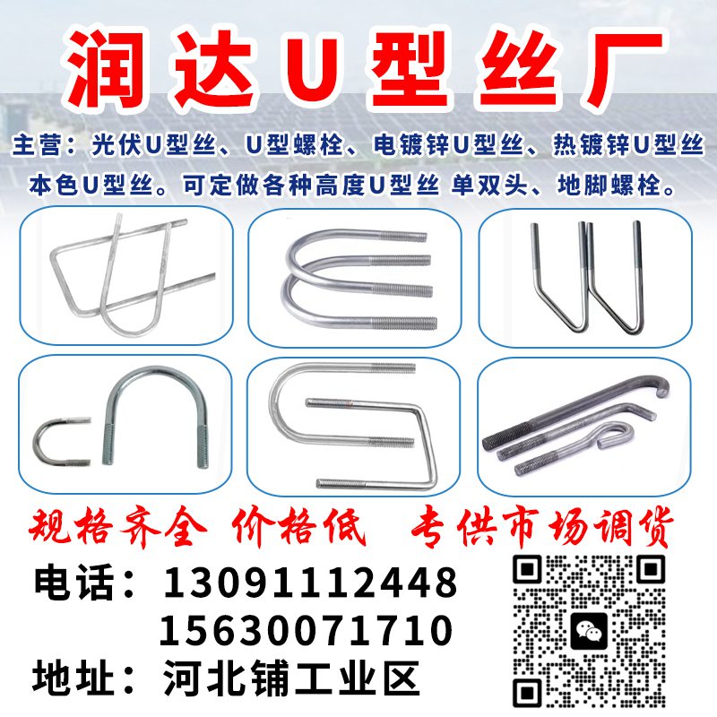 主营:光伏U型丝、U型螺栓、 电镀锌U型丝、热镀锌U型丝、本色U型丝、