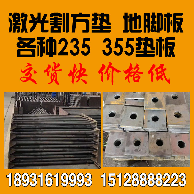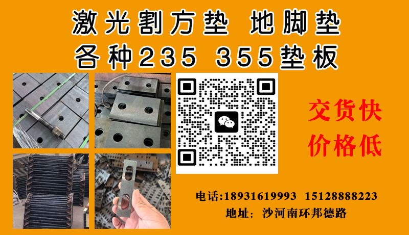 沙河长帆预埋件 激光割方垫 地脚板 各种235 355垫板 专业激光切割3-80厚方垫 圆垫 U型丝垫板 地脚加劲板 各种小垫 235B 355B 交货快 价格低 电话:18931619993 15128888223 地址:沙河南环邦德路