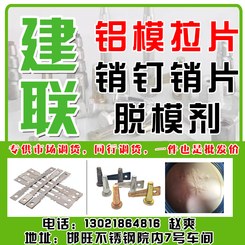 主营:铝模拉片、对拉片,铝模板销钉 铝模板销片,脱模剂,铝膜配件 铝模配件 铝模板拉片