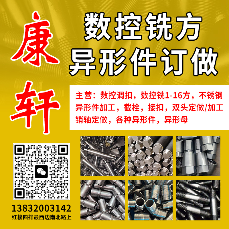 主营:数控调扣,数控铣1-16方,不锈钢异型件加工,截栓,接扣,双头螺栓订做,加工,销轴订做,各种异型件,异型母
