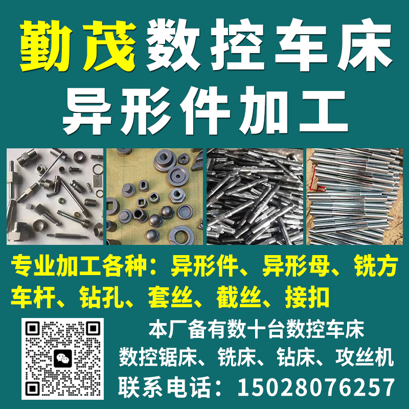 勤茂数控车床 异形件加工 本厂备有数十台数控车床、数控锯床、铣床、钻床、攻丝机 专业加工:各种异型件,异型母,铣方,车杆、钻孔、套丝、截丝、接扣 欢迎新老客户来图来样定做加工,量大从优 电话:15028076257 地址:老电镀北厂内