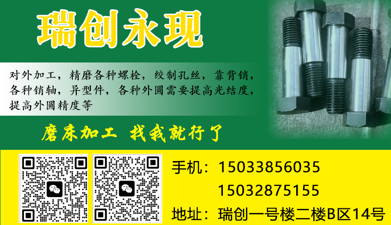 主营:对外加工,精磨各种螺栓,绞制孔丝,靠背销,各种销轴,异形件,各种外圆需要提高光结度,提高外圆精度等等,找我就行了